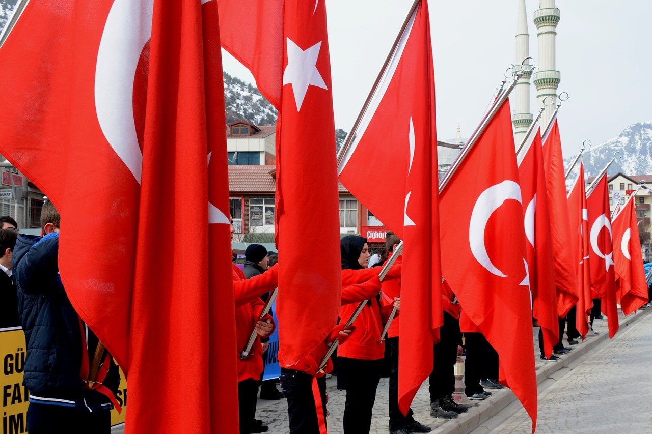 علم تركيا هو علم بنسبة 2:3، أحمر اللون يرمز لدماء الشهداء التي سُفكت في حرب كوسوفو الأولى عام 1362- 1389م، في وسطه هلال أبيض يرمز للخلافة الإسلامية، ونجمة خُماسية ترمز للديموقراطية والهوية التركية.